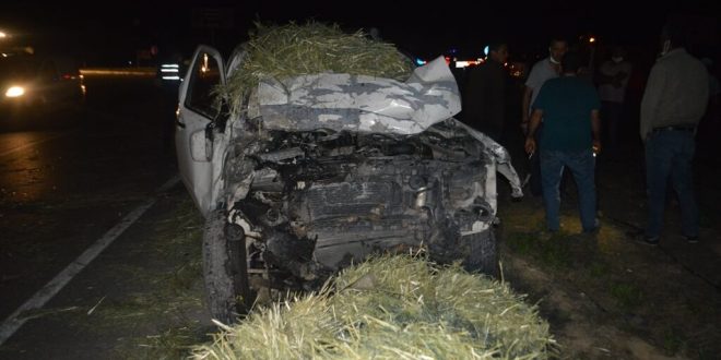 Afyonkarahisar’da kamyonetin balya yüklü traktör römorkuna çarpması sonucu 4 kişi yaralandı.