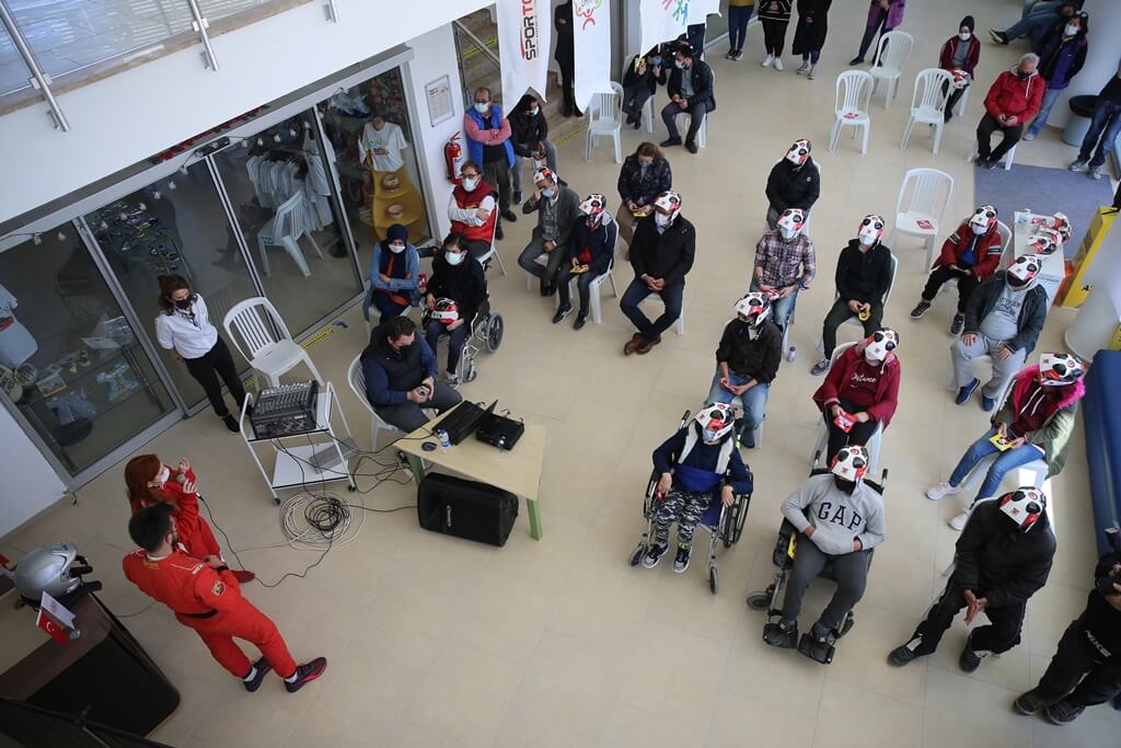 Engelli öğrenciler ve aileleri daha sonra pilotlarla yarış aracını yakından inceledi.