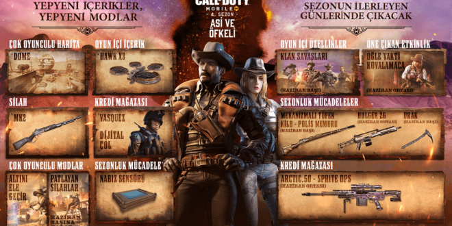 Call of Duty: Mobile’ın dördüncü sezonu “Asi ve Öfkeli” ile Vahşi Batı’ya hoş geldiniz. Geçen hafta yayınlanan oyunun yeni sezonu; güncellenmiş çok oyunculu harita, yeni özellikli oyun modları, yeni silahlar, ikonik Nabız Sensörü, Hawk X3 Skor Serisi, Silah Atölyesi 2.0, Klan Savaşları, yeni etkinlikler, medyan okumalar ve 50 kademeli yeni savaş bileti sunuyor.