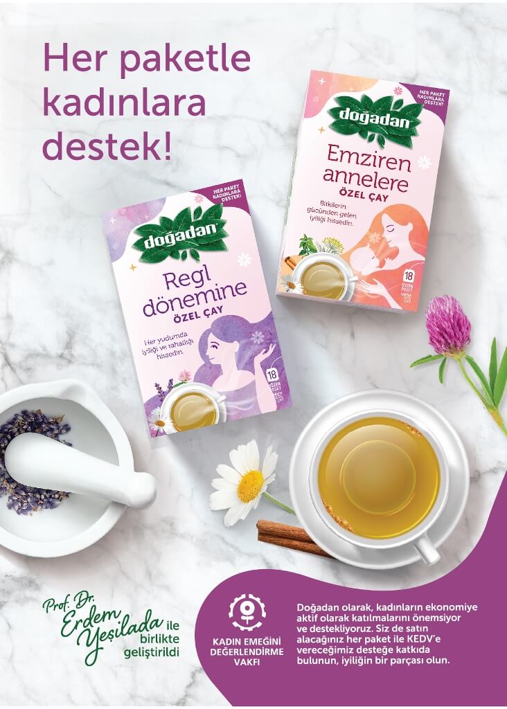 Ayrıca kadınların aktif olarak ekonomiye katılımını önemseyen ve destekleyen Doğadan, kadınların yaşamlarını iyileştirme çabalarına destek olmak ve yerel kalkınmadaki liderliklerini güçlendirmek üzere 35 yıldır çeşitli programlar yürüten Kadın Emeğini Değerlendirme Vakfı (KEDV) ile iş birliği gerçekleştiriyor. Siz de Regl Dönemine ve Emziren Annelere özel çaylardan satın alacağınız her bir paket ile Doğadan’ın KEDV’e verdiği desteğe katkıda bulunup, iyiliğin bir parçası olabilirsiniz.