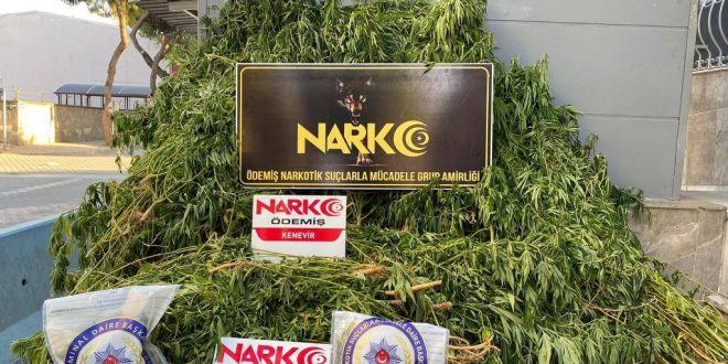 Ödemiş Emniyet Müdürlüğü Narkotik Suçlarla Mücadele Grup Amirliği ekipleri, ilçedeki dağlık bölgede Hint keneviri yetiştirildiğini belirledi.