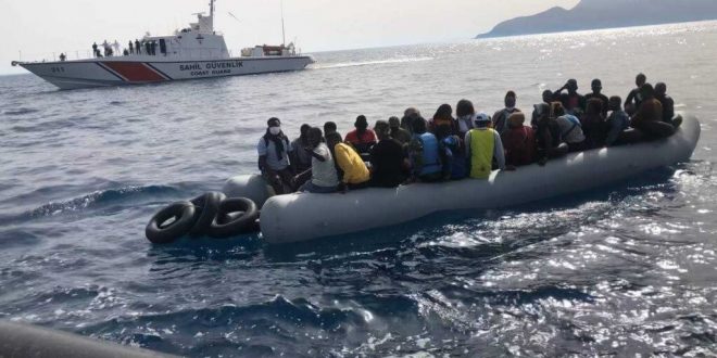 Kuşadası ilçesi açıklarında lastik botta bir grup düzensiz göçmen olduğu bilgisi üzerine bölgeye Sahil Güvenlik Komutanlığına bağlı botlar sevk edildi.