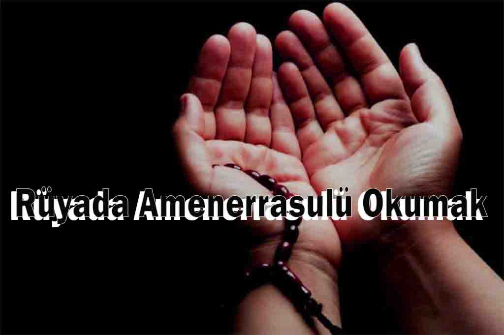 Rüyada Amenerrasulü okumak diyanet merdiven atlayacağına, yapılan hataların telafi edileceğine ve hayırlı bir işi bitirmek için çıkılan yolda karşılaşılan engellerin aşılacağına, beklenmedik kimselerden duyulacak kötü sözler yüzünden moral bozukluğu yaşanacağına, sağlığa önem verilmemesi, dinlenilmemesi ve beslenmenin geri plana atılması yüzünden hasta olunacağına, kötü bir duruma düşürüleceğine, hayırlı bir kısmetle dünya evine gireceğine, kısa süre içinde evlat sahibi olacağına, uğranılan bir ihanetten ötürü kırgınlık yaşanan biri ile yolların ayrılacağına, bazı bilgili kişiler ile gireceği projelerde çok büyük başarılara imza atacağına ve iş hayatında çok saygın bir yere geleceğine inanılır.
