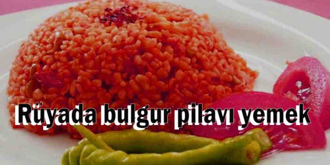 Rüyada bulgur pilavı yemek, ferahlık, sevinç, akid, ilim, nimet ve faydalı rızka delalet eder ve o ana kadar anlaşılamamış bir çok güç ve karışık sorunun çözüme ulaşacağına işarettir. Rüyada bulgur pilavı yediğini gören kişi zengin olur demektir. Başarının ve güzel arkadaşlıkların haberidir. Bulgur yediğinizi gördüyseniz, bu zenginliğin ve mutluluğun alametidir. Rüyada bulgur pilavını yediğini görmek daha önce hiç tanışmadığınız birinden hem para yardımı göreceksiniz hem de çok önemli tavsiyeler alacağınız anlamına gelir. Bazı kere de bulgur pilavı yediğini görmek, rızka ve mala delâlet eder.
